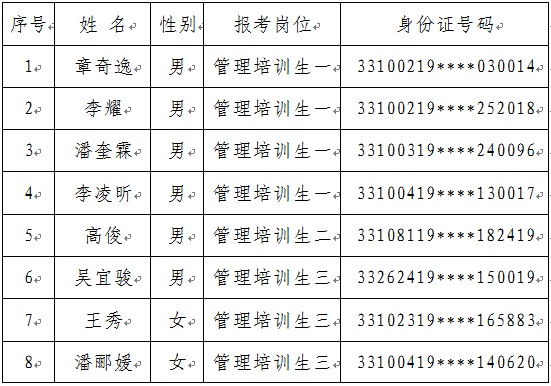 經(jīng)公開報(bào)名、筆試、面試、體檢和考察等程序,確定以下人員為擬錄用人員,現(xiàn)公示如下: