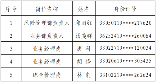 根據(jù)浙江臺(tái)金融資租賃有限公司2022年11月15日公開招聘公告要求,經(jīng)公開報(bào)名、職業(yè)能力評(píng)價(jià)、面試、體檢和考察、會(huì)議研究等程序,確定以下人員為擬錄用人員,現(xiàn)公示如下: